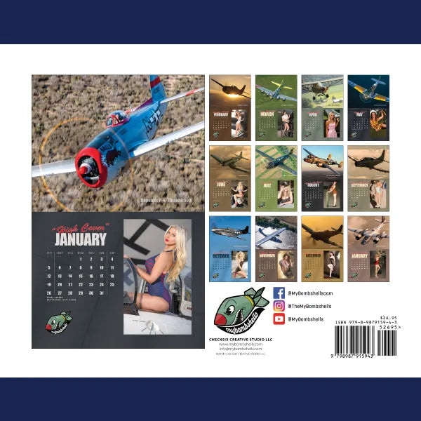 Each 2012 Bombshells Warbirds calendar features 12 months of air to air photography and beautiful models decorously dressed and photographed with each plane. The calendar comes individually wrapped and is in full color, 12x18 inches hanging.