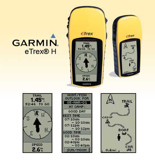 With its high-sensitivity, WAAS-enabled GPS receiver, eTrex H locates your position quickly and precisely and maintains its GPS location even in heavy cover and deep canyons. The advantage is clear — whether you’re in deep woods or just near tall buildings and trees, you can count on eTrex H to help you find your way when you need it the most.