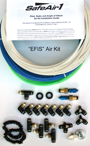 Pitot-Static / Angle of Attack Plumbing Kit for Dynon EFIS (or similar) installations - Kit includes Color Coded Tubing (Pitot, Static, and Angle of Attack), Machined Static Ports, Quick-Disconnect Fittings, Snap Bushings, Grommets, Stainless hardware, and appropriate "AN" hardware for connecting to Dynon's AoA Pitot-Tube, and a detailed installation guide. Kit includes enough fittings to incorporate a backup EFIS or backup airspeed and altimeter.