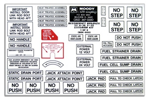 These quality decal sets are designed to provide all the necessary placards for the exterior of various production and homebuilt aircraft. Just cut the decals you want to use from the card and apply to the aircraft exterior.