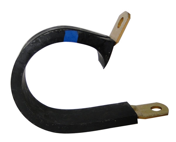 Loop-type cushioned aluminum alloy clamp. Cushion (non-fuel resistant) is bonded to inner surface and edges of clamp. WDG clamps are cushion wedge type. Cushion assures tight fit and eliminates vibration, thus preventing line abrasion.